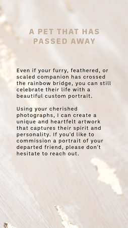 Your pet brings so much joy and love into your life, and what better way to celebrate that bond than with a custom pet portrait? Let's work together and create a piece of art that reflects their unique spirit!
